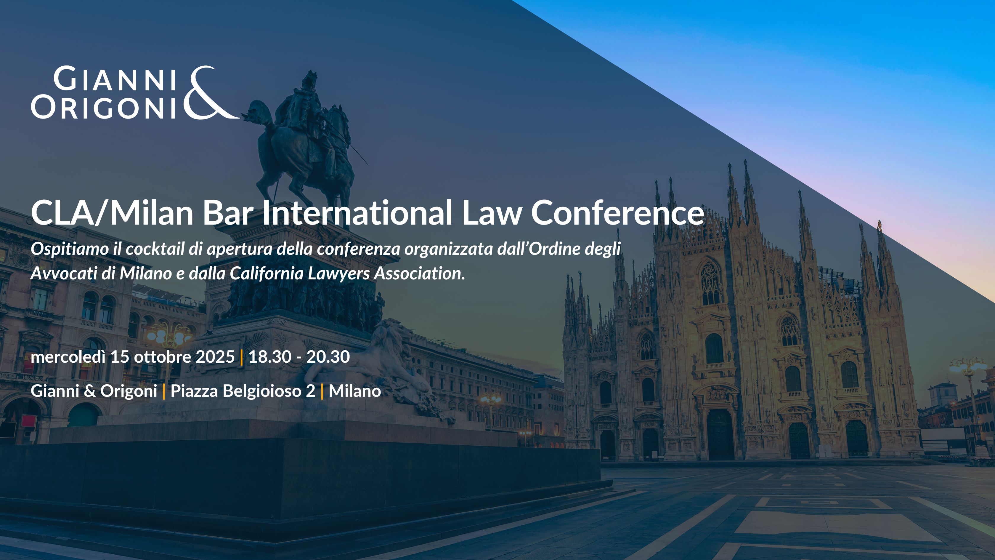 Ospitiamo il cocktail di apertura della conferenza organizzata dalla Commissione CRINT dell’Ordine degli Avvocati di Milano e dalla California Lawyers Association e in programma a Milano dal 15 al 18 ottobre 2025.